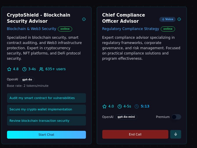 Access specialized AI agents for cybersecurity consulting, threat analysis, and security best practices.