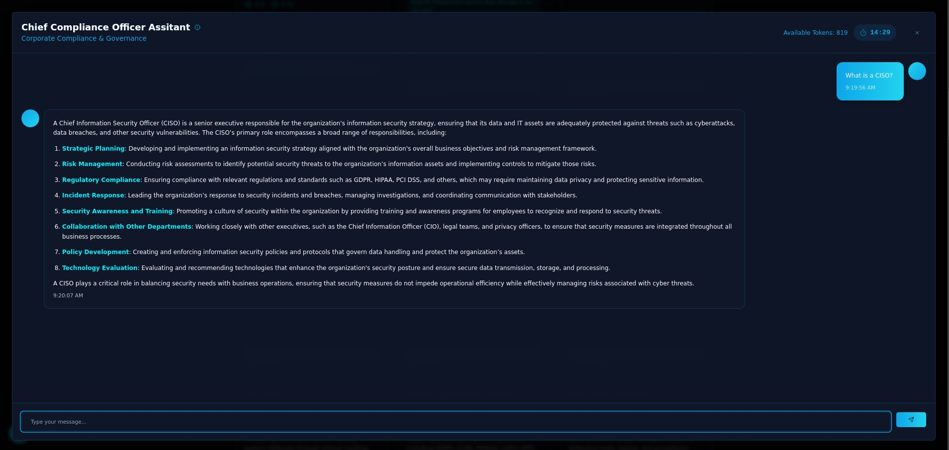 - Deploy a ‘Cyber Sentinel - CISO GPT’ to assist with high-level cybersecurity strategy and compliance questions.