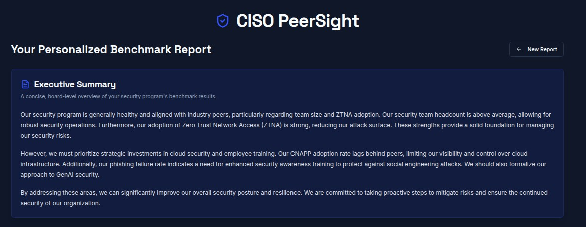 Visit CISO PeerSight and unlock AI-powered security benchmarks that will transform how you think about your program—and your professional future.